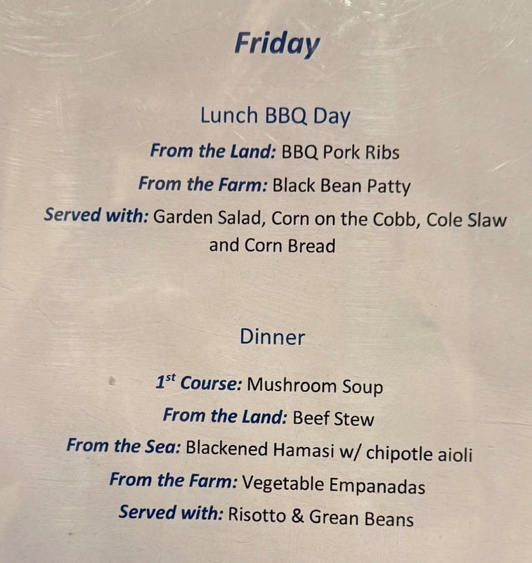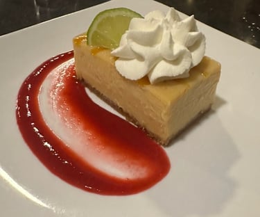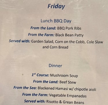 The BBQ lunch was another favorite, with ribs cooked perfectly. Ashley, the pastry chef, created two desserts every day—one for lunch and one for dinner—plus fresh bread nightly that somehow got better as the trip went on. Her home town treat, a key lime pie with a mango swirl over the top, really hit home for me as one of my favorite desserts of all time!