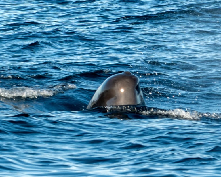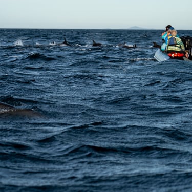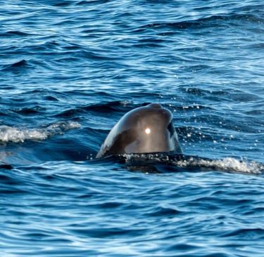 We encountered hundreds of dolphins swimming alongside a large pod of sperm whales, including calves. Our captain and crew stopped the ship for 30–45 minutes, giving us time to fully absorb the moment. Dolphins leapt playfully around us while the whales lingered at the surface, almost as if they were curious about us. Blowholes stretched from horizon to horizon. It felt surreal.