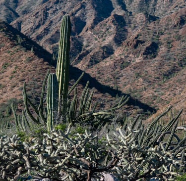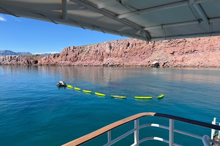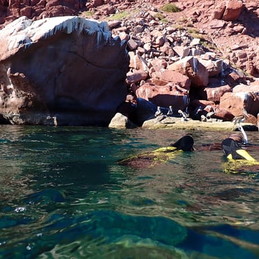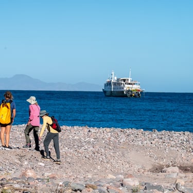 We didn’t collect tide pool samples like Ed and Steinbeck once did, but many of our stops were in the very same places where they encountered Indigenous communities and documented life along the shores. Instead, we played—swimming in waters that are now protected, part of UNESCO World Heritage sites, and hiking ridgelines laced with cactus, unusually green thanks to a rainy December. We snorkeled among vibrant corals and sea creatures, kayaked and rode skiffs close to sea lions and nesting birds, and explored the dramatic cliffs of islands and peninsulas that still feel largely untouched.