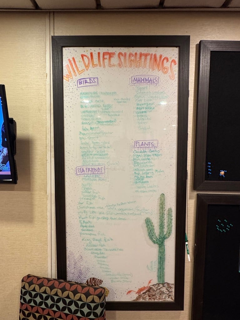 They kept community boards where we could list the wild life and plants we saw. And changed the daily spot light info throughout the week.